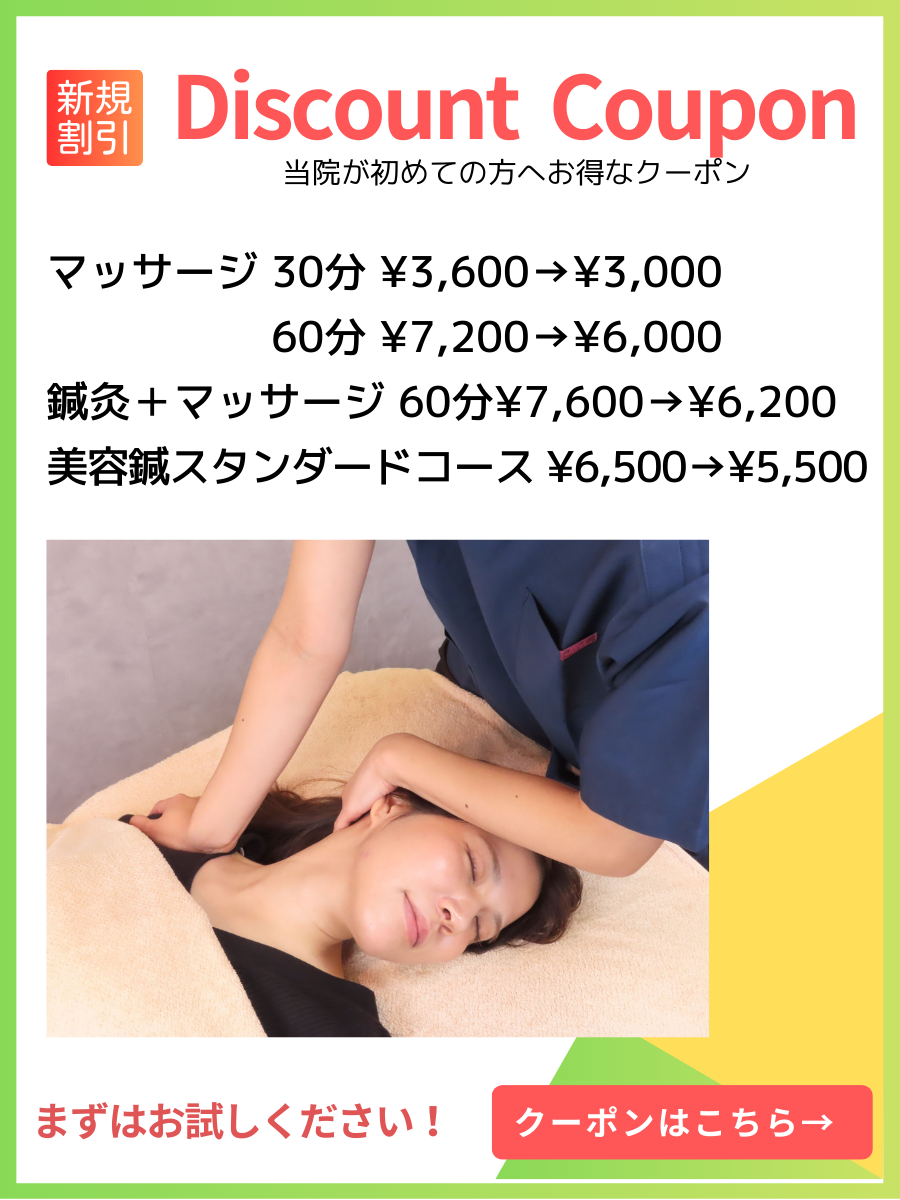 初めてご来院の方は、ホームページ限定の下記クーポンをご利用ください。